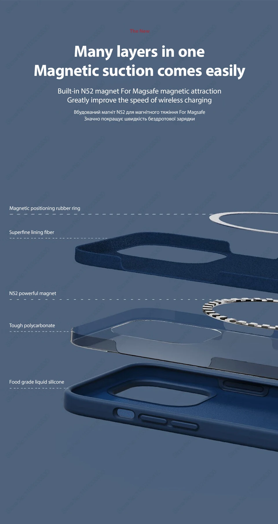 For Magsafe-fundas de carga inalámbrica para For Apple iPhone 15, 11, 14, 13, 12 Pro Max Plus, silicona líquida, cubierta suave a prueba de golpes, carcasa Original