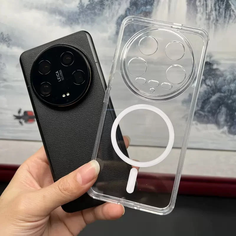 For Magsafe-fundas transparentes de lujo para For Xiaomi Mi 14, 13, 12 Ultra, 13t, 12t Pro, carga inalámbrica magnética, accesorios de cubierta a prueba de golpes