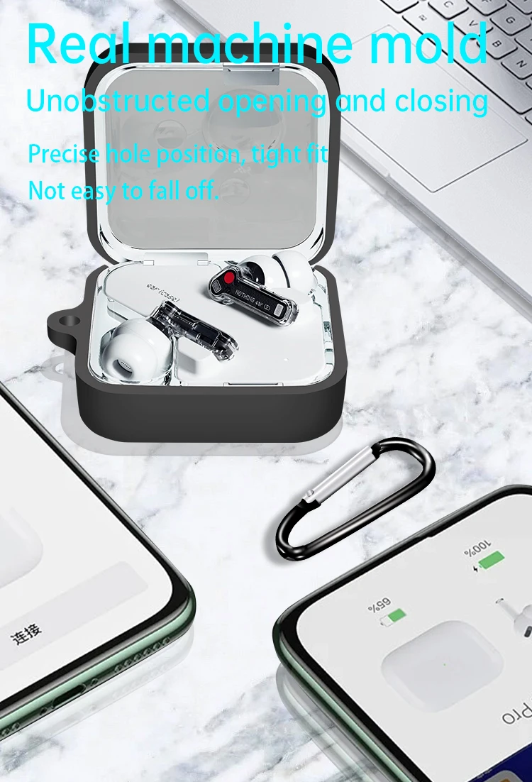 Comprar For Nothing Ear2 Ear3 funda protectora de silicona suave para auriculares inalámbricos, funda protectora de piel con llavero