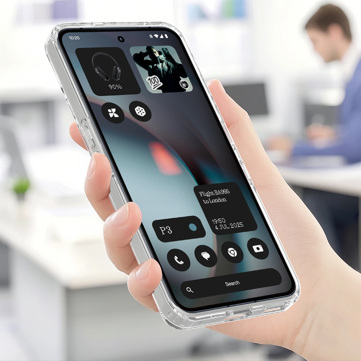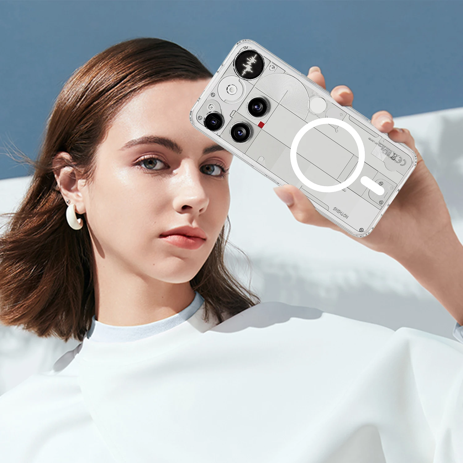 Cubierta trasera transparente como el cristal, muestra tu dispositivo.