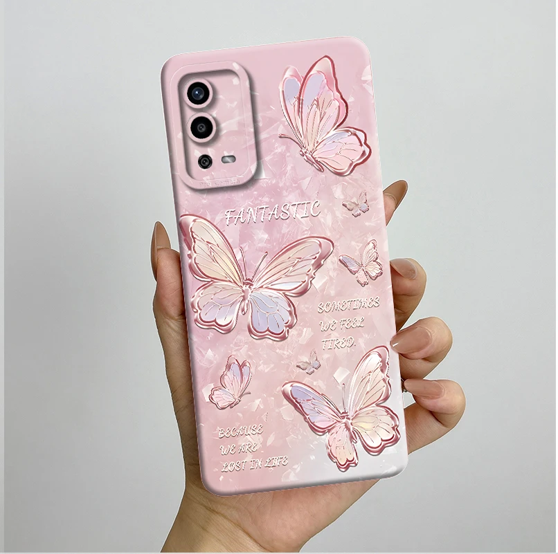 For Oppo A55 Case Pretty Butterfly Flowers Full Coverage Soft Liquid Silicone Funda For Oppo A 55 4G Anti Drop Phone Back Cover