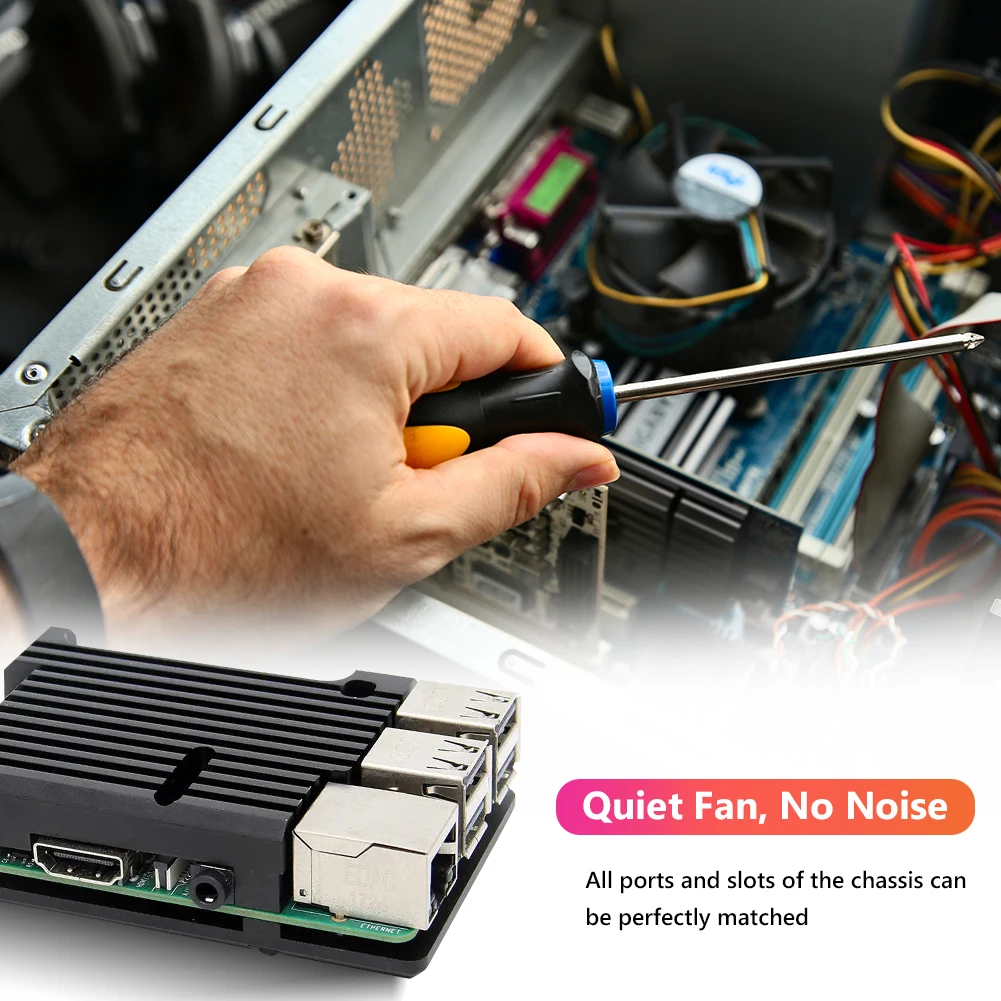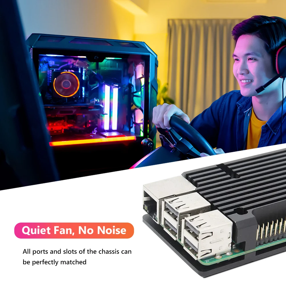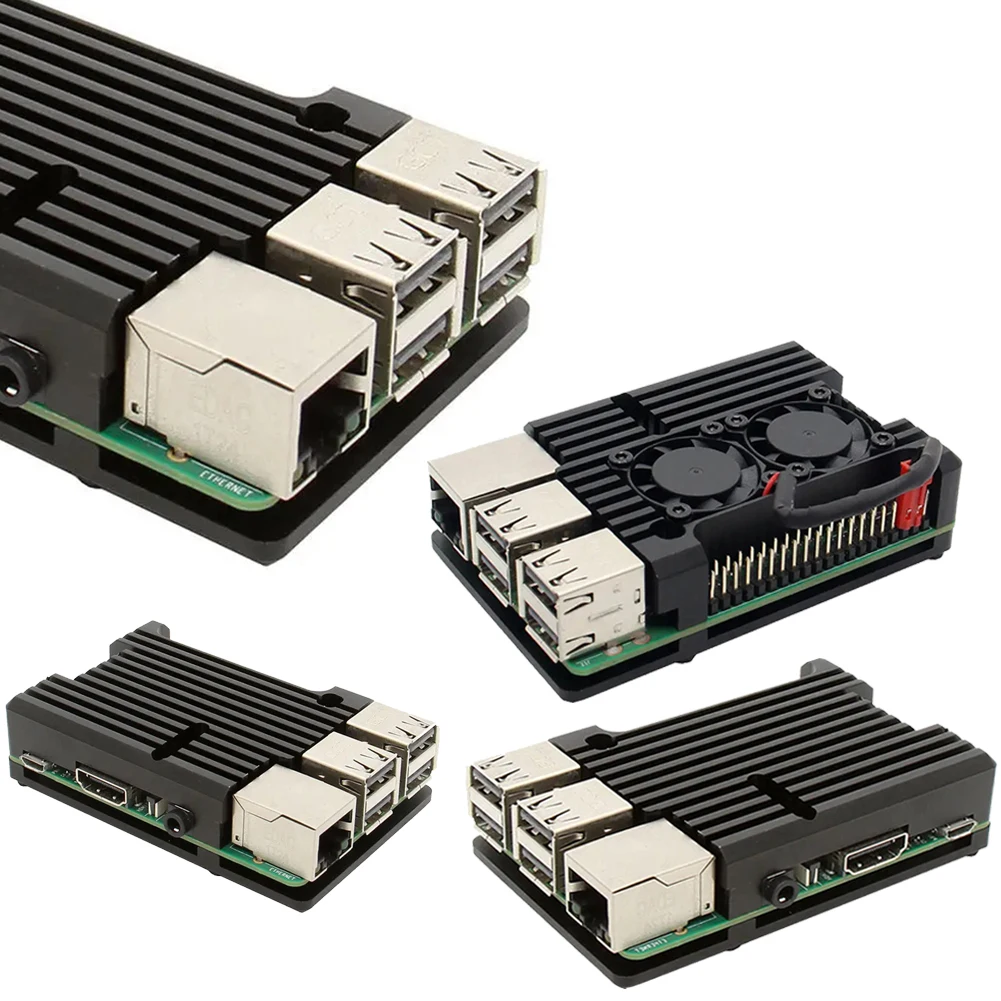 Para Raspberry Pi 3 Modelo B + Carcasa de carcasa de aluminio con ventilador de refrigeración dual Característica: El diseño de la arquitectura de enfriamiento pasivo puede lograr una disipación de calor perfecta; Diseño Delgado; Fácil de instalar; Ventilador silencioso (opcional), sin ruido; Aluminio liso y recto; Todos los puertos y ranuras se pueden combinar perfectamente.