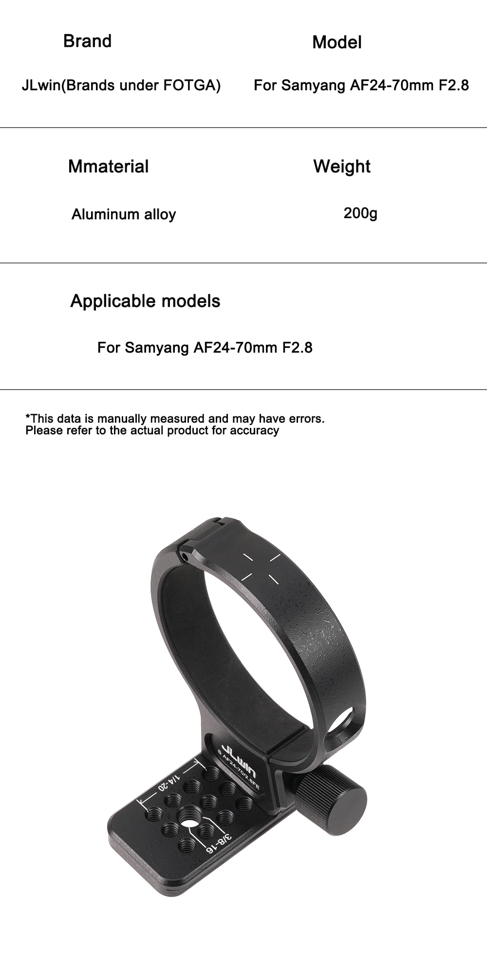 FOTGA-Adaptador de anillo de Base de Collar de montaje de trípode de liberación rápida 1/4 para Samyang AF24-70mm F2.8, soporte de lente de cámara, accesorios de trípode
