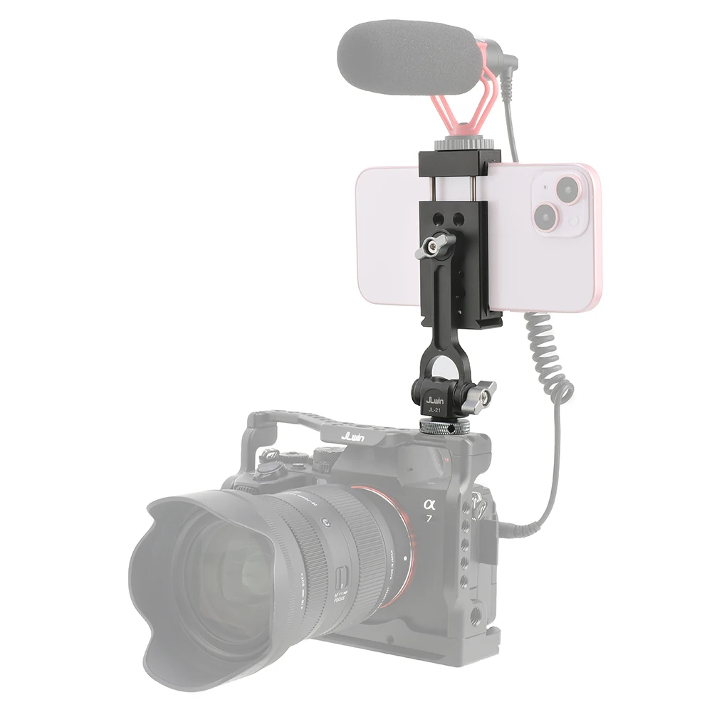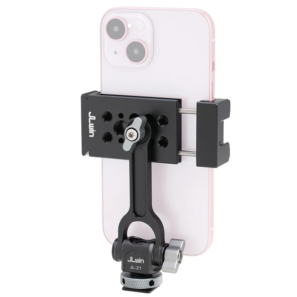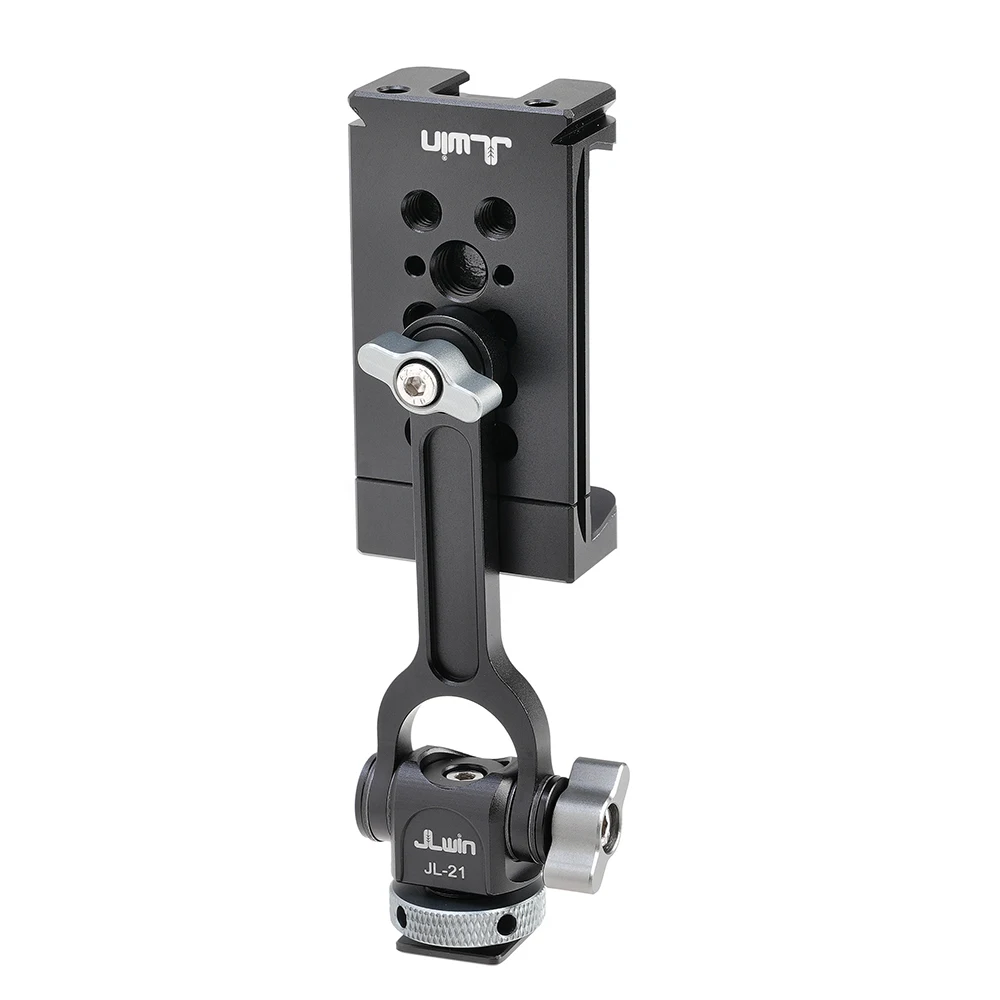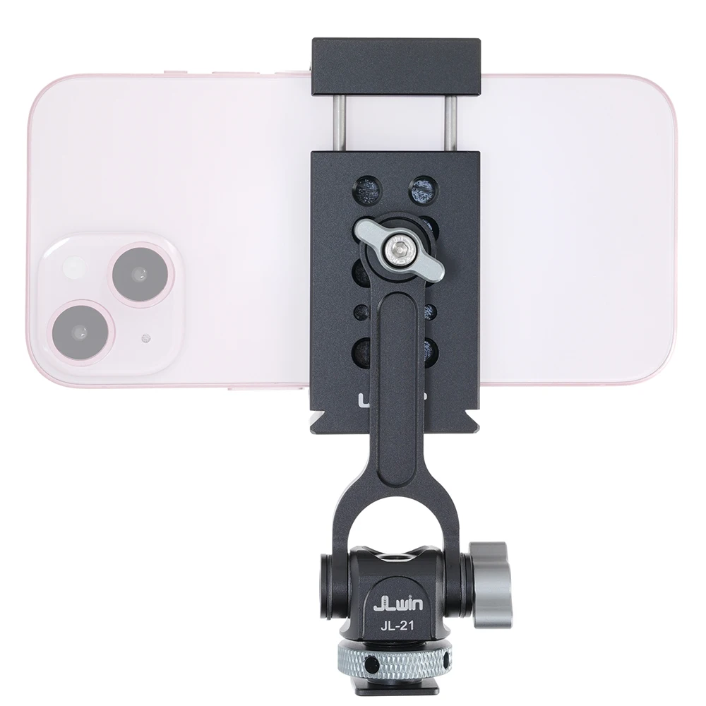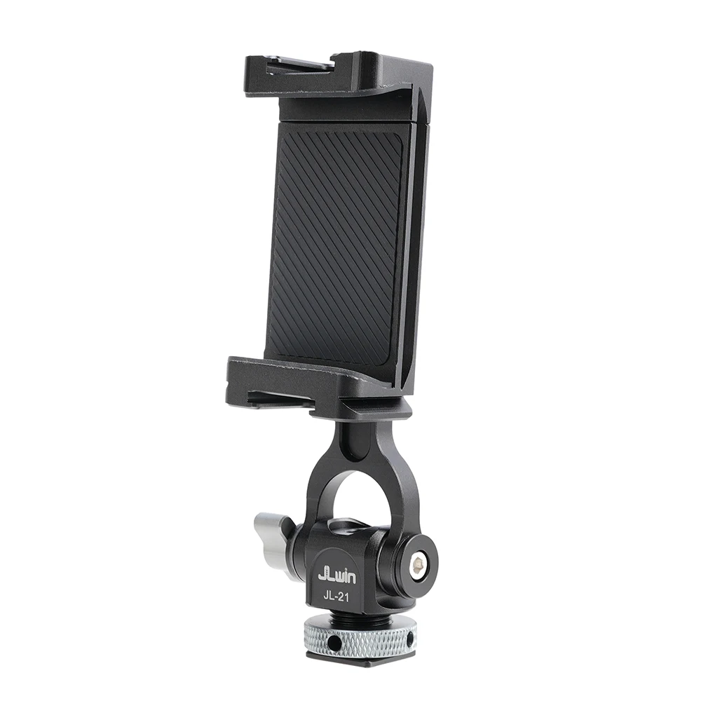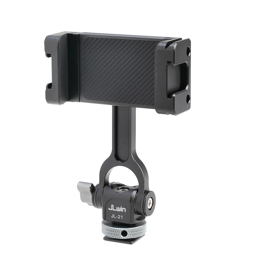 Soportes triples de zapata fría y dos orificios de expansión de 1/4 ": el soporte para teléfono inteligente con 2 zapatas frías laterales y 1 Zapata fría trasera, y 2 orificios de tornillo traseros de 1/4" 3/8 ". Puede conectar luz LED, micrófono u otros dispositivos adicionales. Es una herramienta muy práctica para YouTubers, Vloggers y fotógrafos al aire libre.