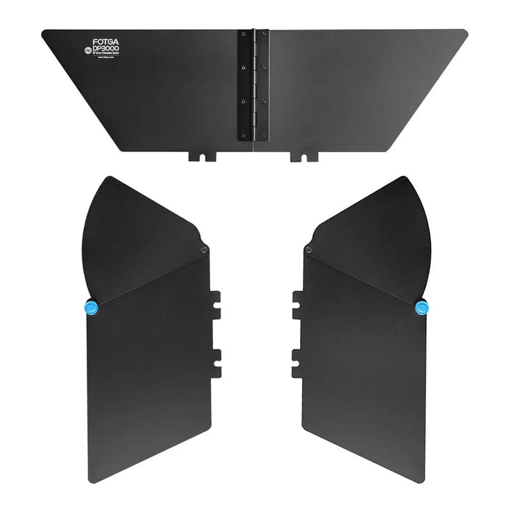 El kit incluye una bandera francesa y dos alas laterales ajustables.Cada uno de los tres flapscan se posiciona y se bloquea en su lugar para adaptarse a diferentes distancias focales proporcionando la máxima cantidad de sombreado sin obstaculizar la toma: