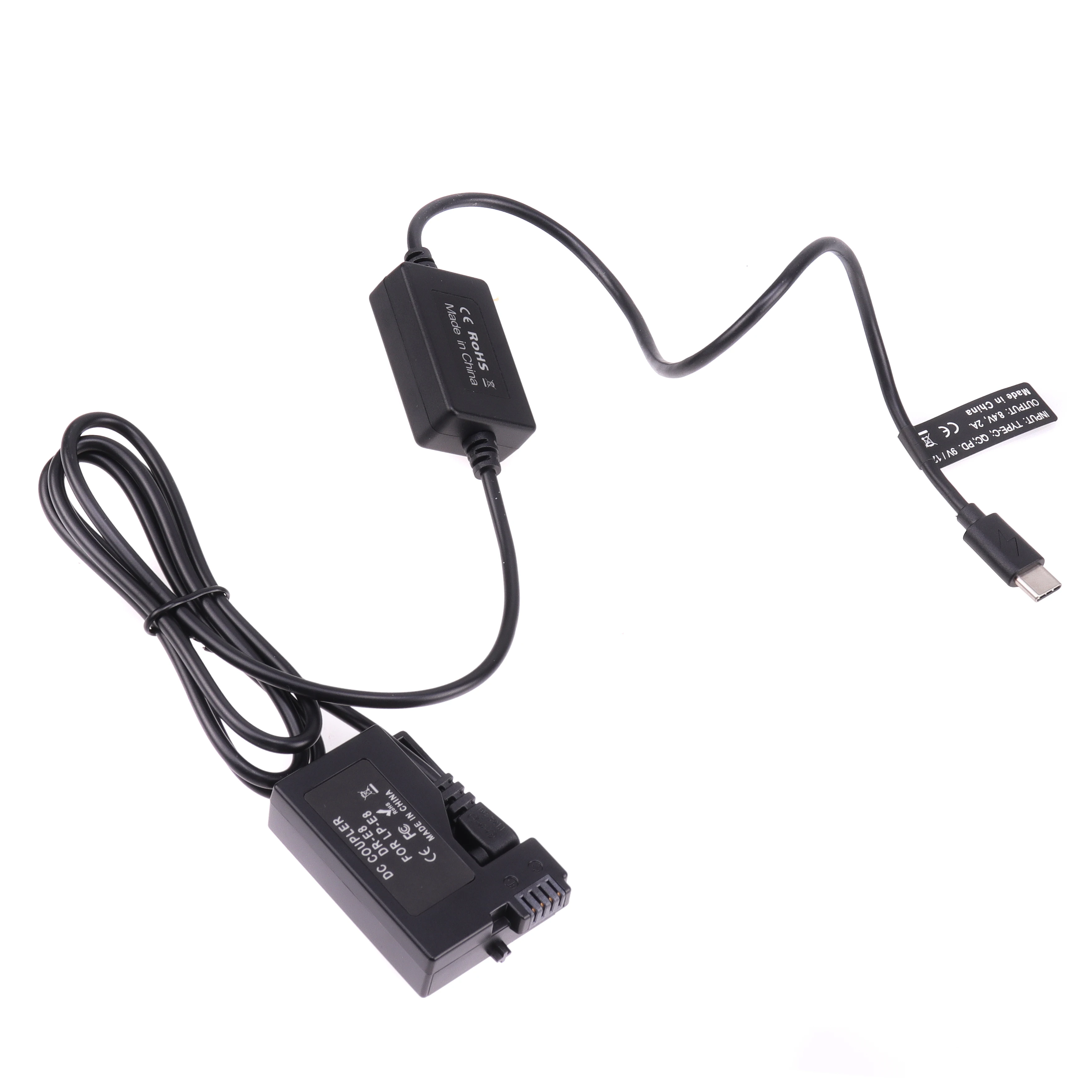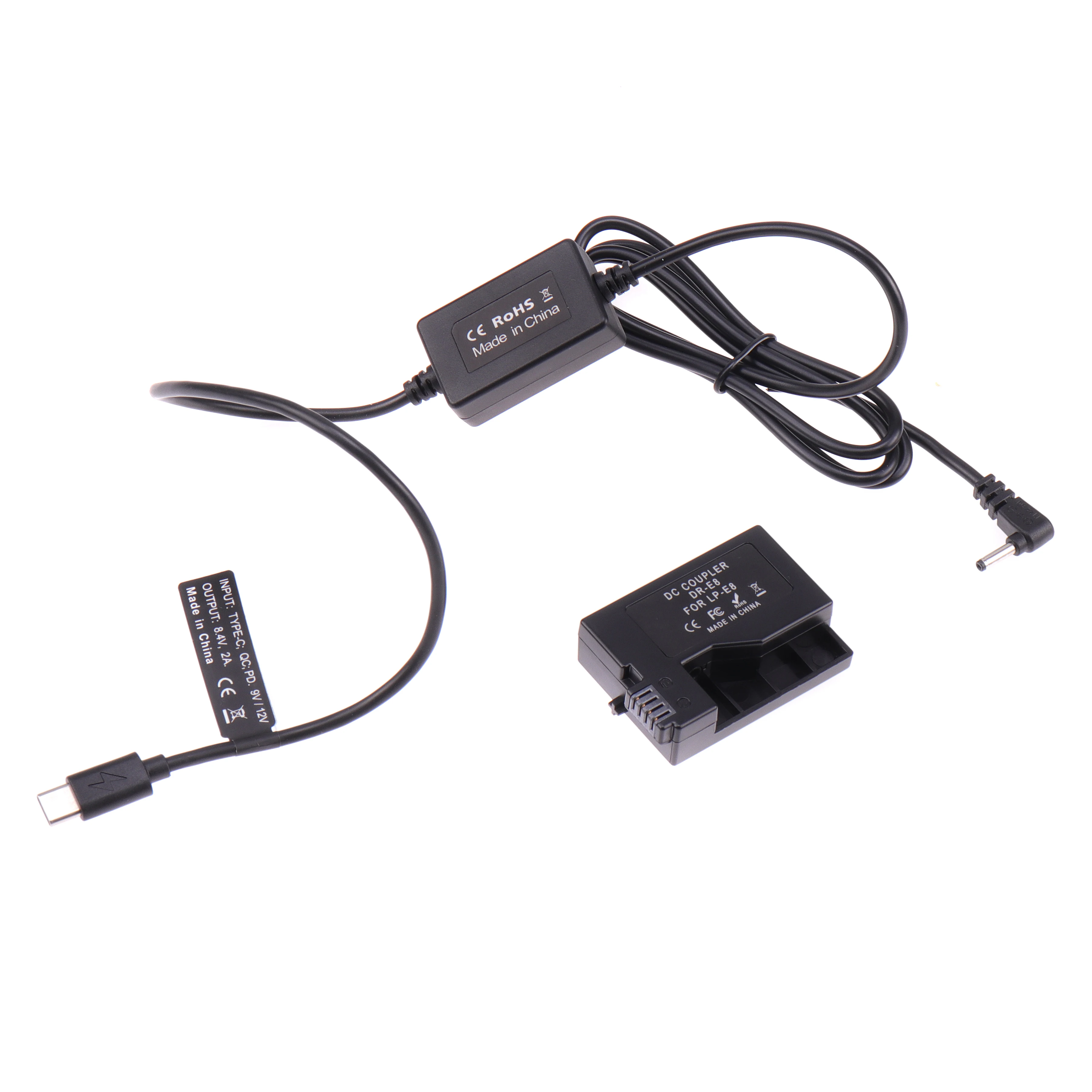 Model: E8-Type-C-DC3011Input voltage: PD 9VOutput voltage: 8.4V/2ATotal product length: 130cmDC port size: DC3.0*1.1mm (positive inside and negative outside)Applicable power supply: power bank and mobile power bank with PD 9V protocol output