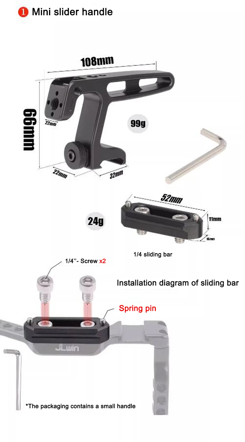 Se puede montar en la cámara DSLR o en la jaula con control deslizante, apretar de forma firme y sencilla mediante una perilla de tornillo.