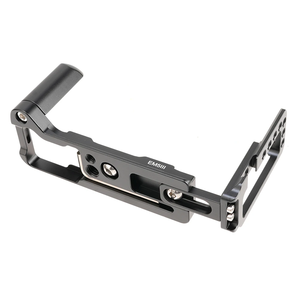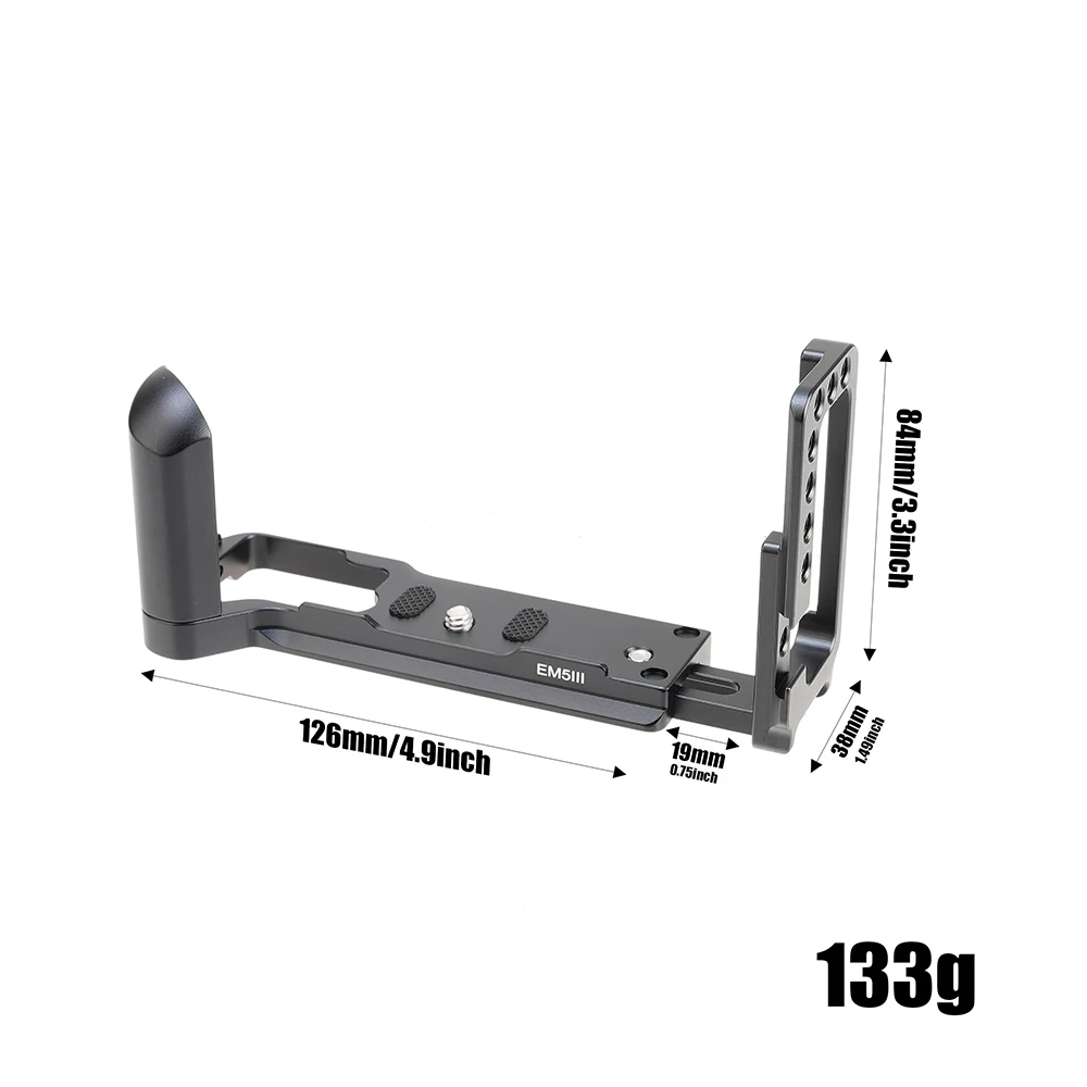 Diseñado específicamente solo para la cámara Olympus OM-D E-M5 Mark III, diseño de cuerpo dividido a medida, se puede desmontar fácilmente y se puede usar verticalmente;no afecta la apertura de la tapa del compartimiento de la batería ni la apertura de la escotilla de los cables de datos, y no afecta el plegado y apertura de la pantalla, los orificios para tornillos reservados de 1/4" en la parte inferior y lateral para extensiones de funciones;
