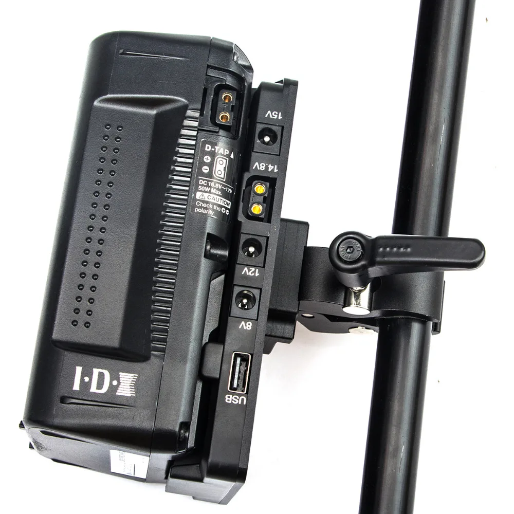 WY-VG1 is a power supply system using Sony V-mount batteries, with output over-voltage protection circuit, low static energy consumption, low temperature coefficient, high conversion efficiency, protection automatic lock and other functions; with independent power switch, stop working When the switch is turned off, it can prevent power loss; with a power indicator, it is always red, indicating normal operation; and the V port battery output is DC15V, DC12V, DC8V and USB5V four voltages, of which DC15V can power the camera, and DC12V can To power the monitor, DC8V can power SLR cameras, and USB5V can power mobile phones, radio equipment, microphones and microphones, etc. It is a practical and efficient multifunctional V-mount battery power supply system. Specification: Input voltage: 14.8V (following battery) Output voltage①: USB 5V/2A Output voltage②: DC 8V/3A (DC5.5*2.1mm) Output voltage③: DC 12V/2A (DC5.5*2.5mm) Output voltage④: D-TAP 14.8V Output voltage ⑤: DC 15V/2A (DC5.5*2.5mm) Size:160*105*20mm Packages include: WY-VG1 Battery Plate Adapter *1 DC-DC spring wire (5.5*2.5mm) *1 Manual *1