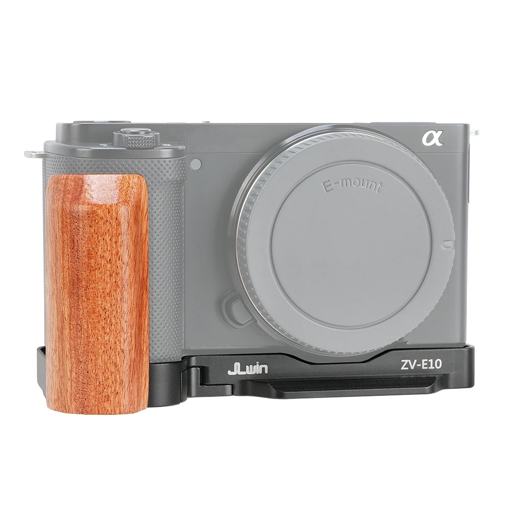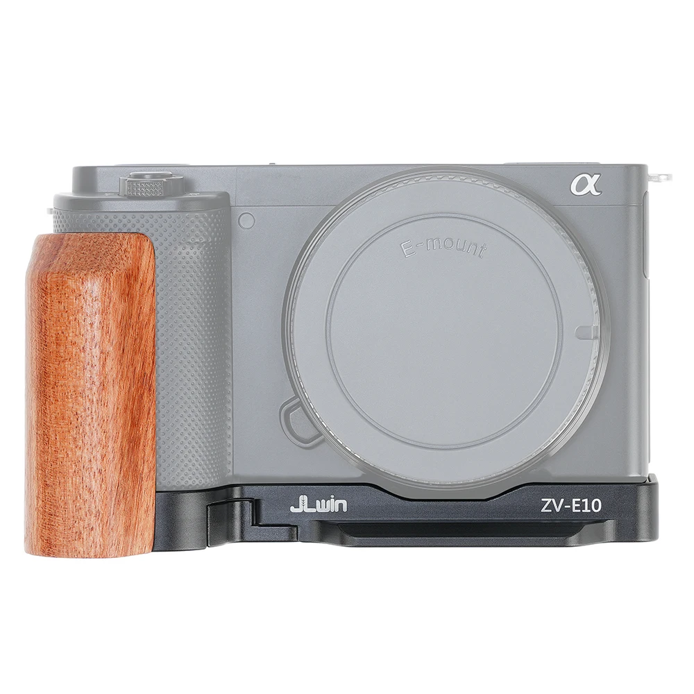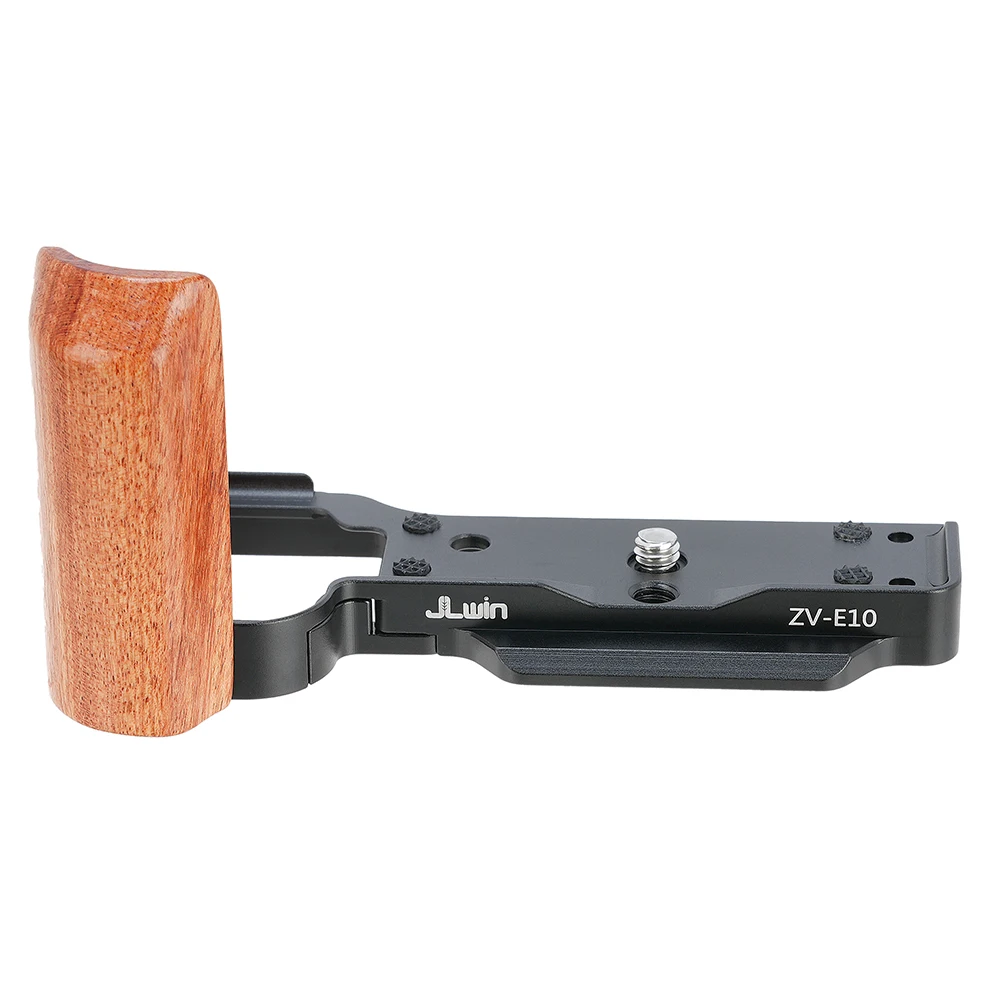 1. Expanding Mounting Options: This camera L Plate features multiple 1/4'' screw holes and ARRI 3/8'' screw holes, providing versatile mounting options for other equipment.2. Versatile Connection Ports: The top of the L Plate has a cold shoe base for mounting a microphone or fill light, while the bottom features multiple 1/4'' threaded holes and a 38mm Arca-compatible port for attaching to tripods or other accessories.3. Lightweight and Durable Construction: Constructed from high-quality aluminum alloy material using CNC machining and anodic oxidation treatment, this L Plate features a porous design that maximizes strength while reducing weight.4. User-Friendly Design: The non-slip pad on the bottom of the L Plate prevents scratches and wear, while the ergonomic wooden handle provides a comfortable grip. This L Plate is designed specifically for the Sony ZV-E10 camera.5. Easy Battery Access: The L Plate includes a battery opening at the bottom, providing convenient access for batterySpecification: