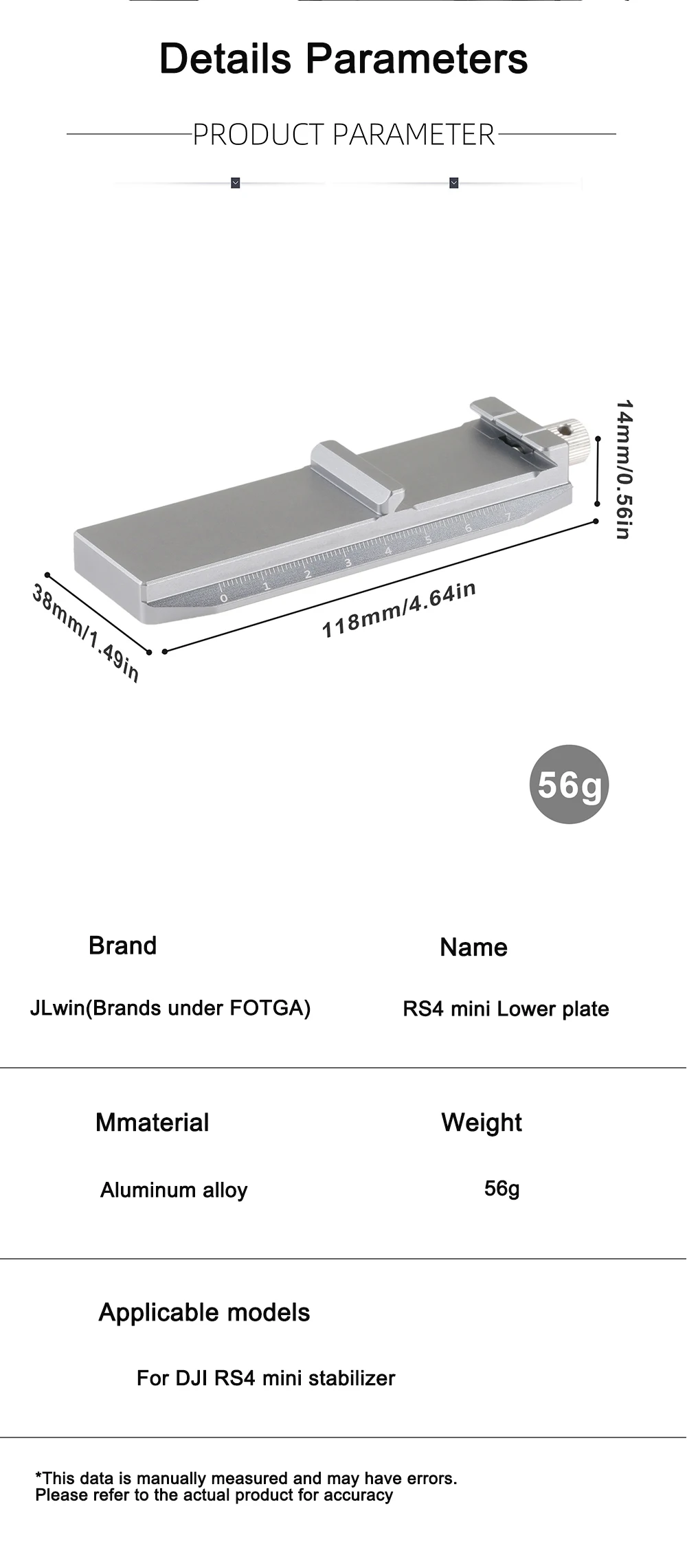 Compatible con DJI RS4 mini estabilizador de cardán, estándar Arca-Swiss.