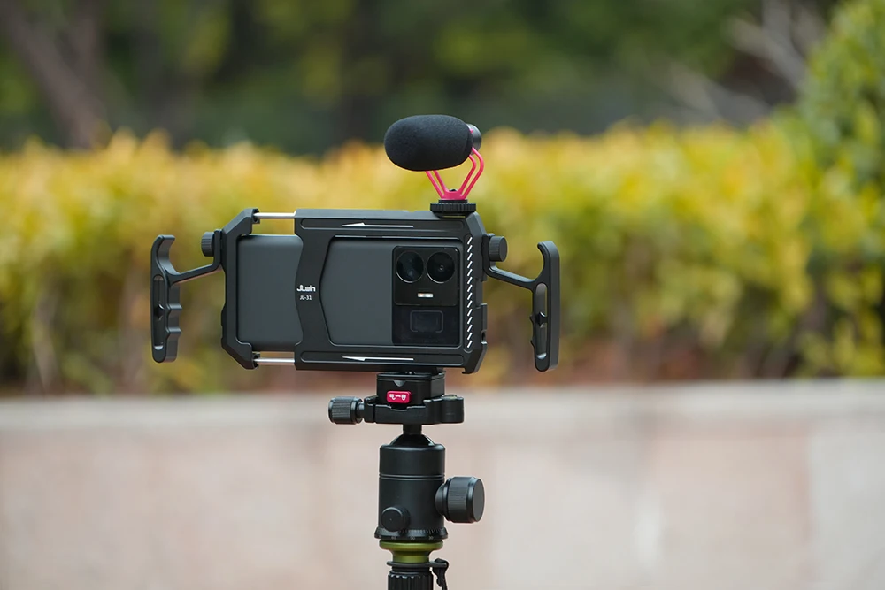 Comprar FOTGA Universal Smartphone jaula de Metal Video Rig manijas estabilizador Vlogging transmisión en vivo Kit de soporte para teléfono móvil videomaker