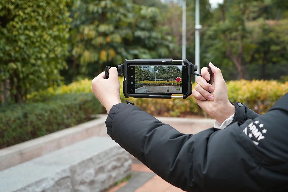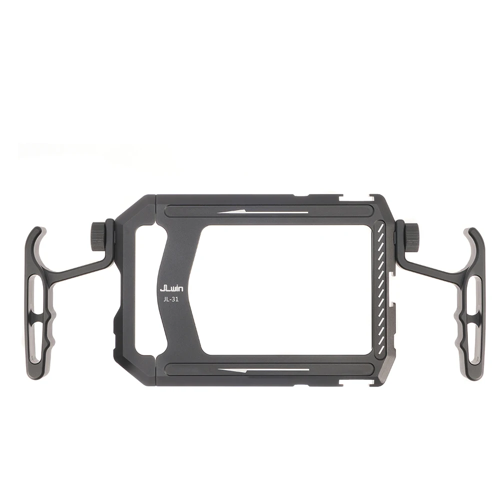 Descripción:Este producto es una jaula para conejos de uso general para teléfonos móviles, que puede sostener el teléfono móvil en varios modos para tomar fotografías.Se puede sostener con una mano, dos manos, en la mano y se puede instalar en un trípode para disparos horizontales y verticales.1.Diseño (empuñadura ergonómica) con una sola mano, dos manos y de mano, que se adapta mejor a la mano y hace que disparar sea más estable.También viene con una zapata fría y una interfaz roscada de 1/4 para facilitar la expansión externa.2.Ligero y portátil: hecho de aleación de aluminio de alta resistencia, con un peso de solo 144 g, es fácil de transportar con una mano.3. Diseño de doble manija: el equilibrio del teléfono molil para disparar molifle es más estable, más libre para transportar la lente4.Ajuste de estiramiento a presión: ajuste de estiramiento a presión de 133 mm-175 mm para teléfonos móviles IOS y Android dentro del rango de tamaño5.Interfaz ampliable: tornillo estándar de 1/4", zapatera fría y puertos de monitor de posición Allegra para compatibilidad total con una amplia gama de accesorios.El paquete incluye:1 * marco de fotografía móvil