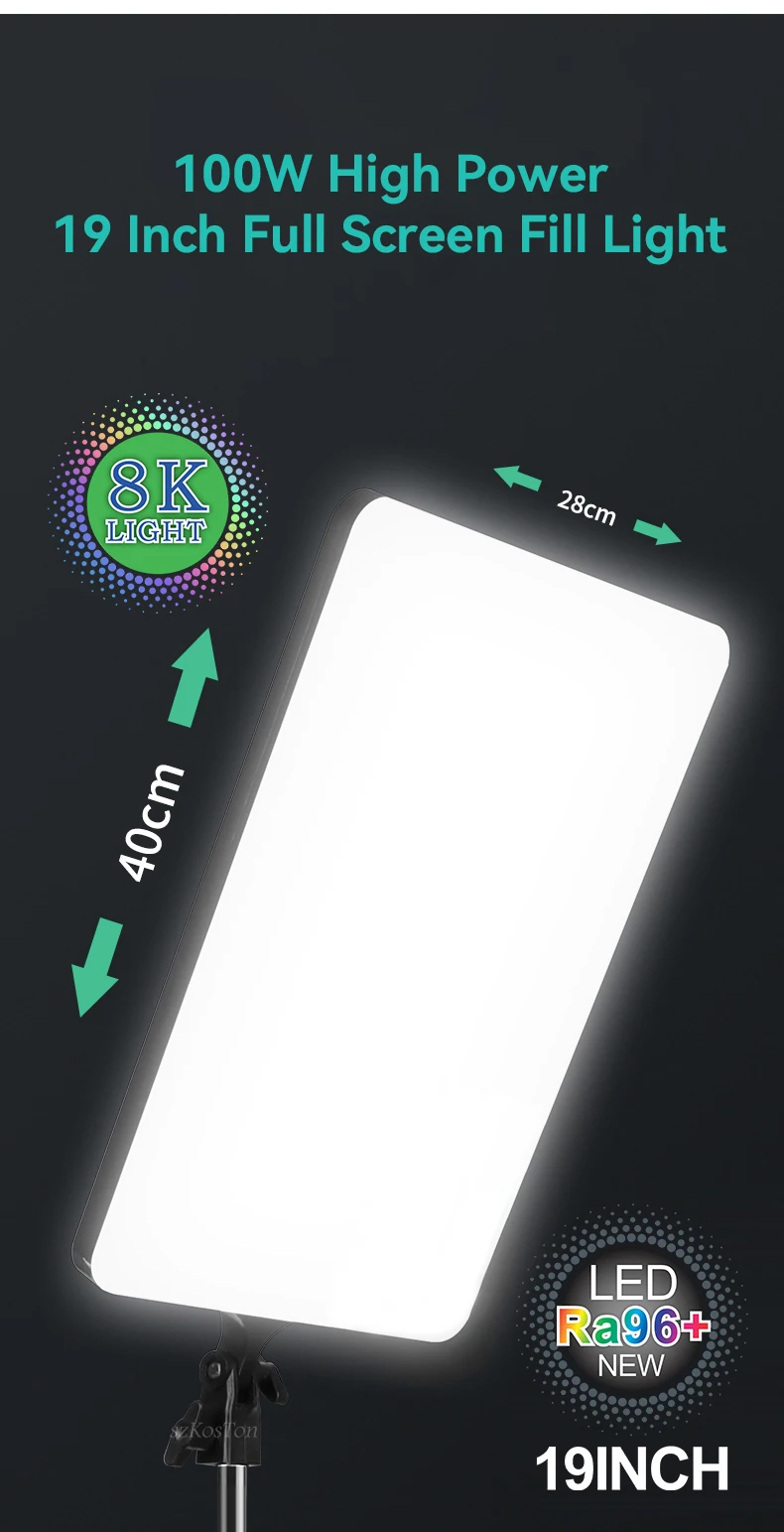 Potencia de salida de 100W + 7950LM + Panel de luz súper grande de 18,5 pulgadas.