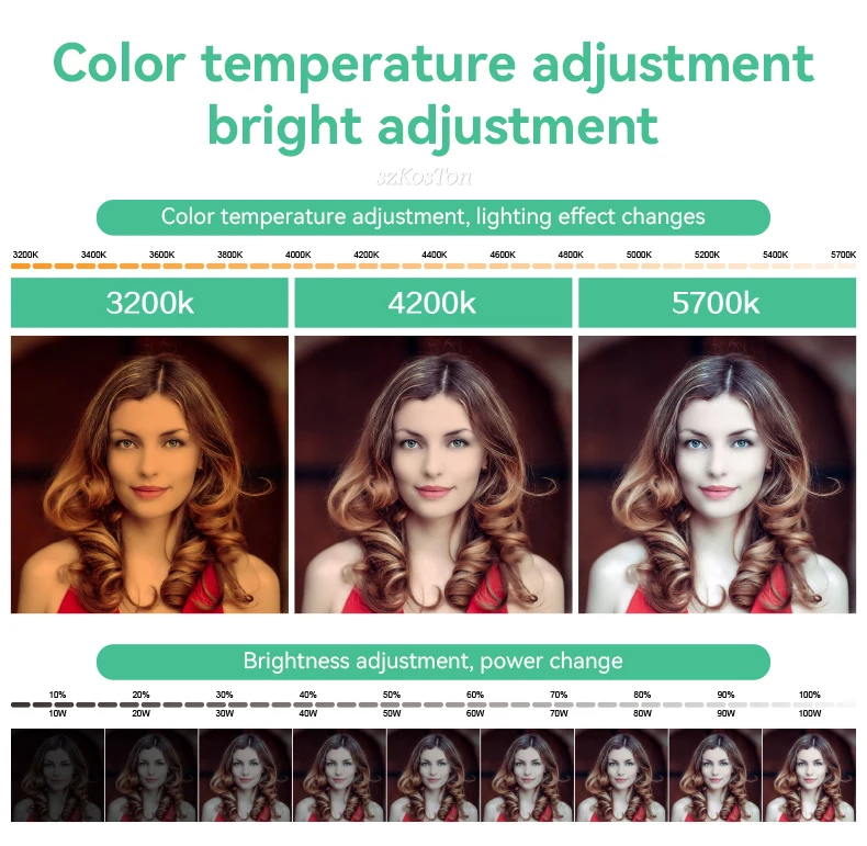 El CRI de la luz es una luz de fotografía profesional, el CRI (índice de reproducción de color) es superior a 96, presentará perfectamente el color original del objeto. Szkoston.