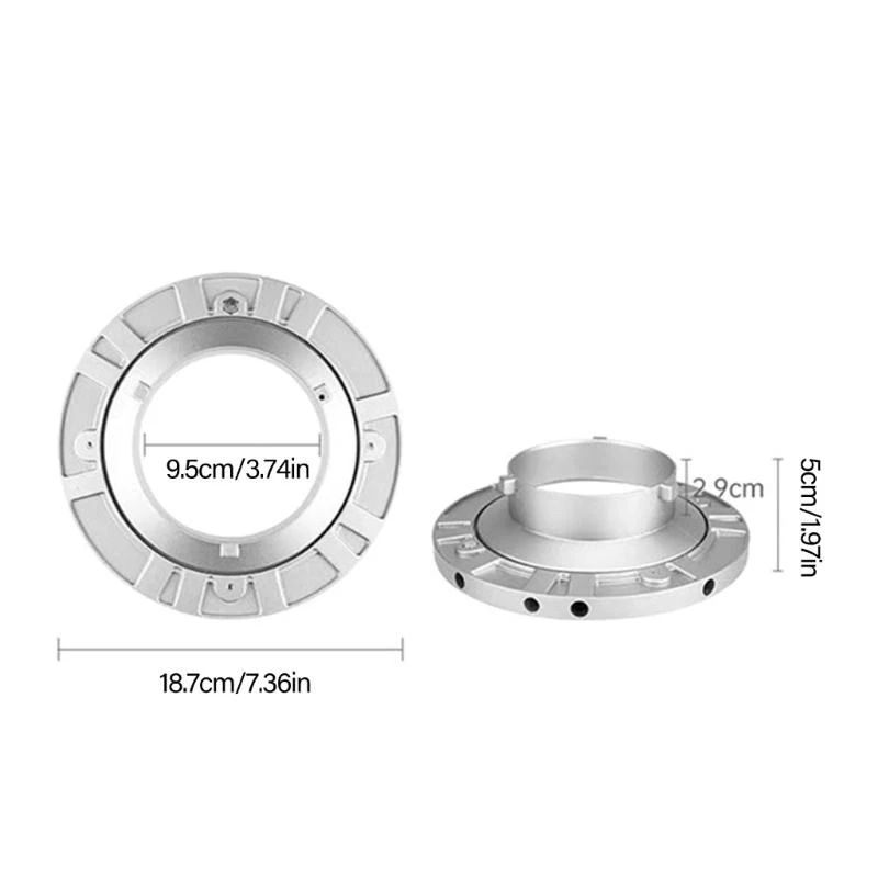 Características:OOTDTYEl adaptador de montaje Bowen ofrece una gran compatibilidad con Softbox octogonal Softbox Square o Softbox rectangular de ocho orificios, lo que permite una instalación y extracción rápidas con varias luces fotográficas.