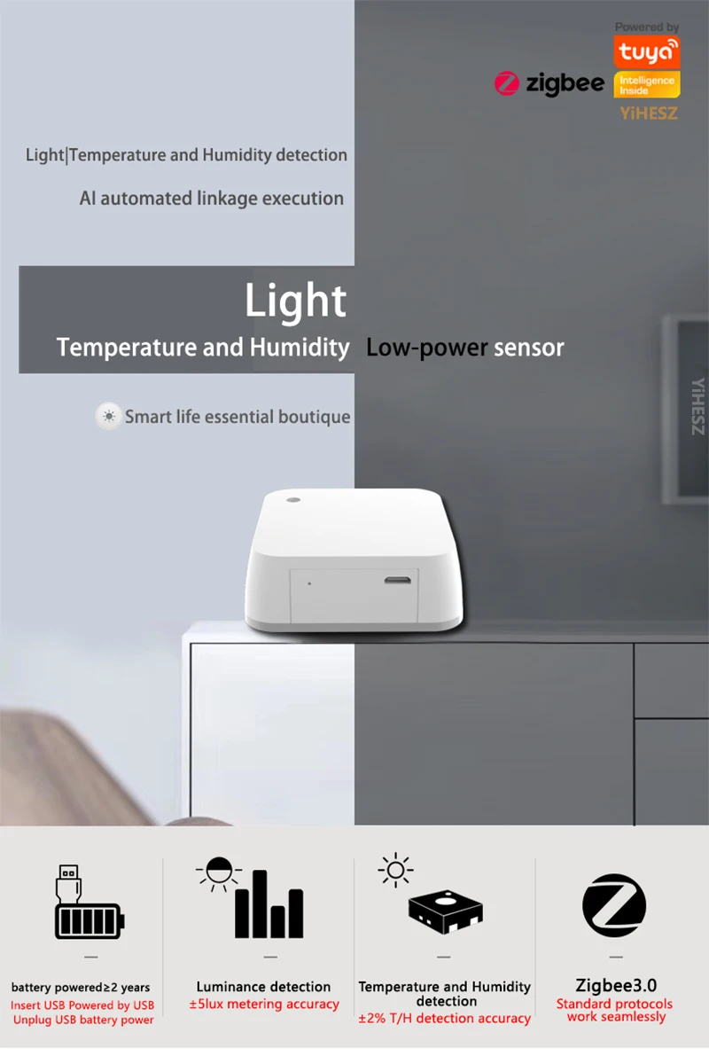 Comprar Fotómetro Tuya Zigbee, termohigrómetro, Sensor de luz inteligente, higrómetro, Monitor ambiental, detector de brillo para hogar inteligente