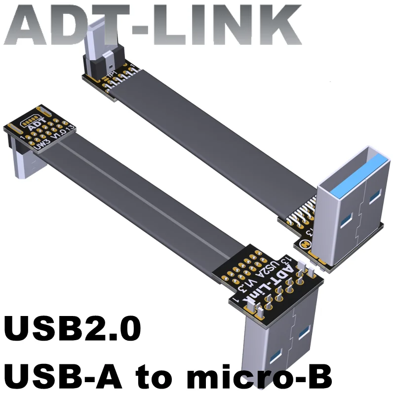 Comprar FPV-adaptador Micro USB 2,0 tipo A, 90 grados, 5-300cm, cinta FPC plana micro-b A USB-A, extensor macho, multicóptero, fotografía aérea