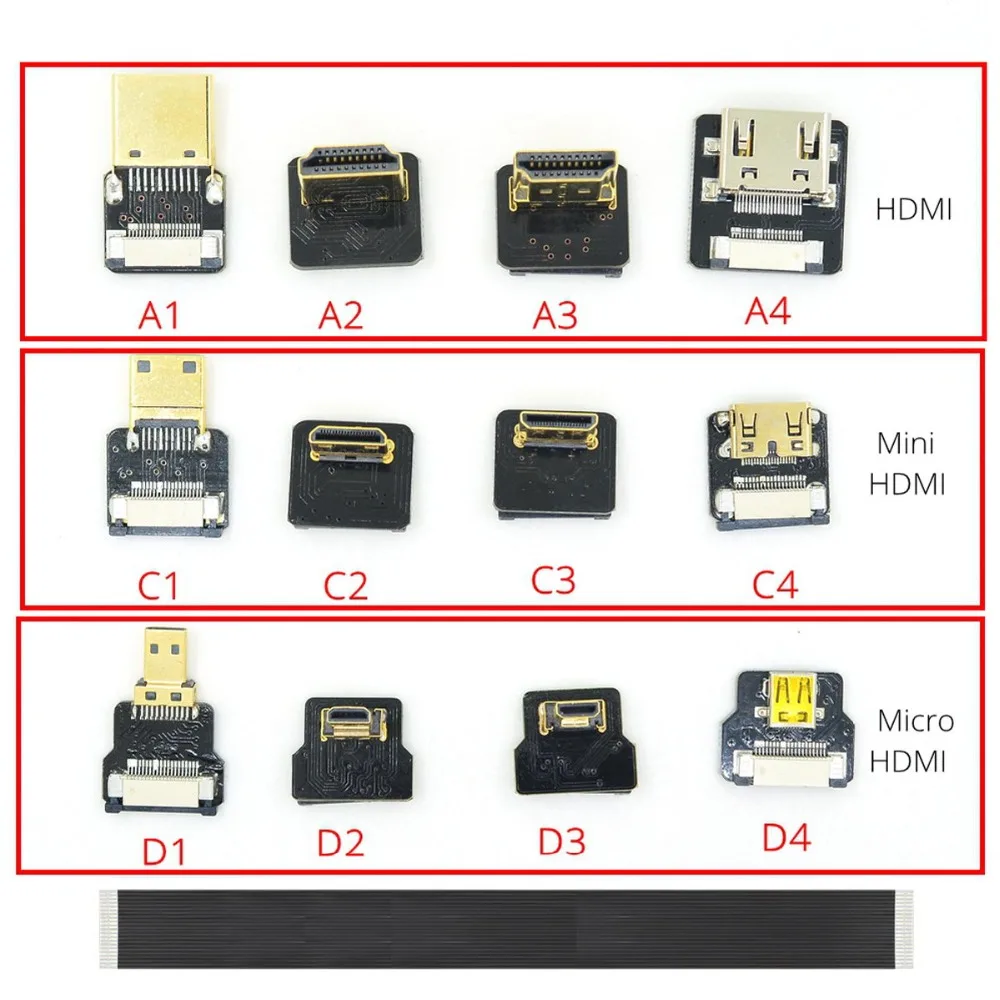 Comprar FPV Micro HDMI compatible con conector de 90 grados FPC Flexible plano Mini Cable de cinta HD FFC 20 pines para Drone Gopro DSLR Kit de cardán