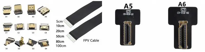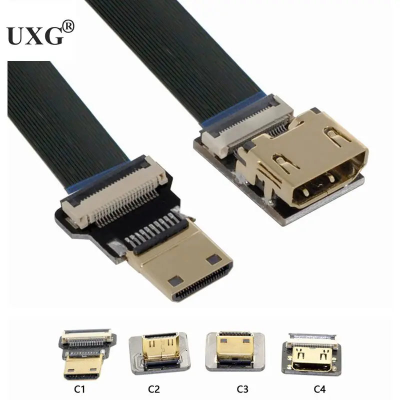 Cable plano FPV HDMI ángulo hacia arriba/abajo Micro HDMI a HDMI adaptador de 90 grados cable de cinta hdmi pin 20 pines Cable conector