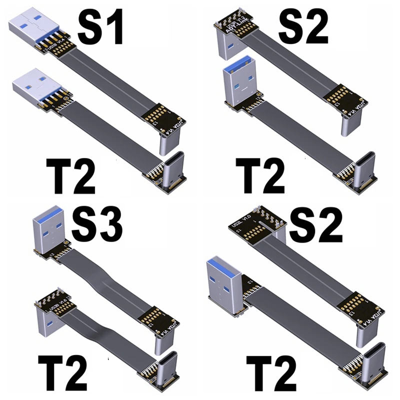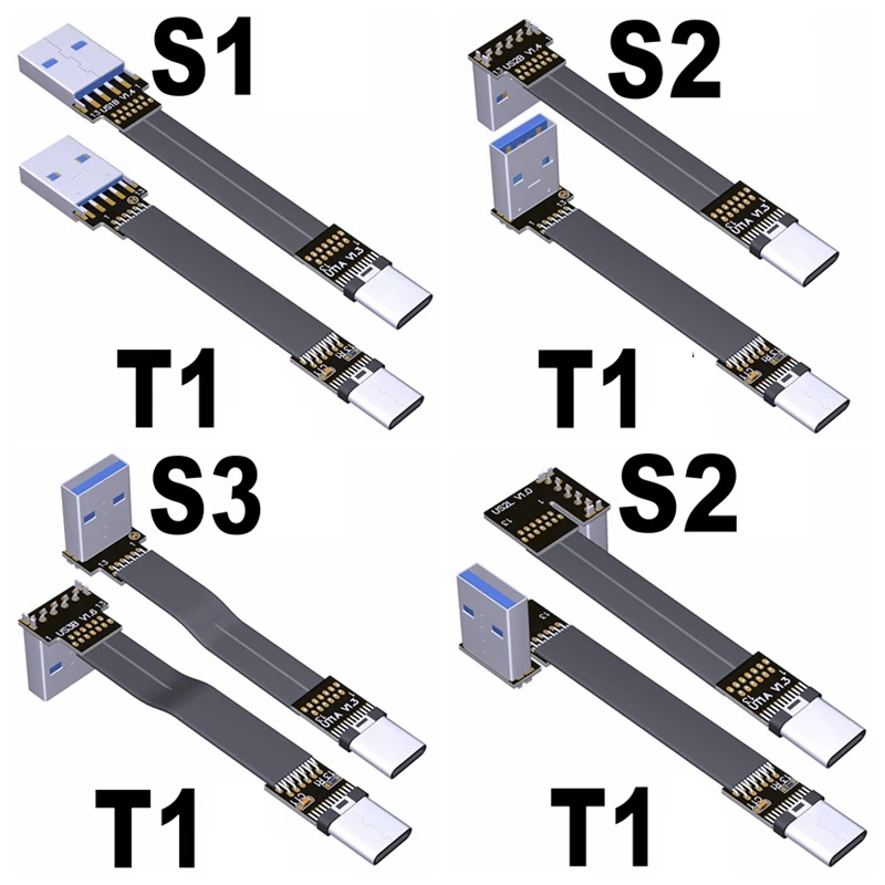 Comprar FPV USB 3,1 Gen2 tipo C 90 grados a USB-A adaptador elevador 3cm-300cm FPC cinta plana USB3.1 tipo A Cable de extensión de 20 pines