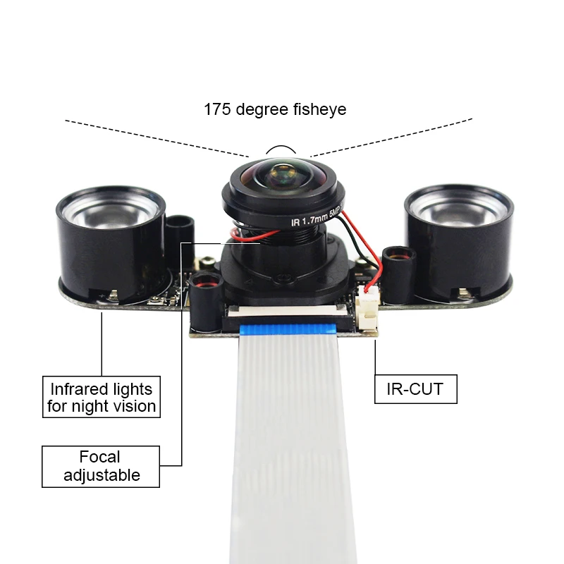 Raspberry Pi 4 IR-CUT Cámara de visión nocturna Focal ajustable 5MP Fish Eye Cambia automáticamente día-noche para Raspberry Pi 4 Modelo B/3B+/3B