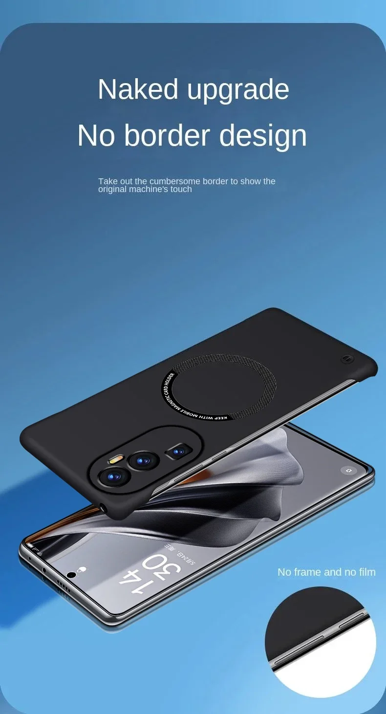 Frameless Magnetic Magsafe Car Magnetic Wireless Charging Case For OPPO Reno10 Pro Plus 5G Case Slim Hard PC Matte Cover Cases