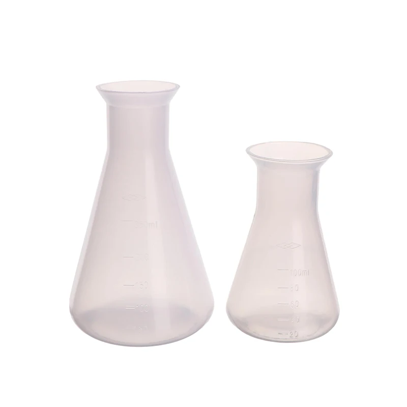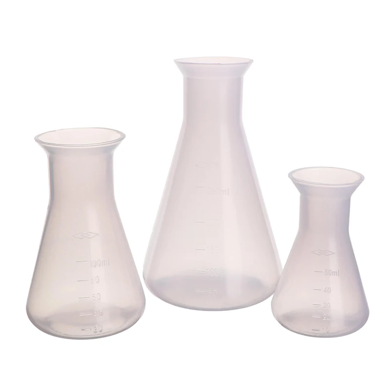 5. A escala Diseño: matraz Erlenmeyer de plástico para pruebas de laboratorio, diseño abierto, el cuerpo del contenedor tiene una escala digital y el número de mililitros se puede leer fácilmente.