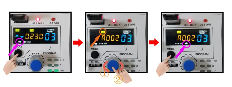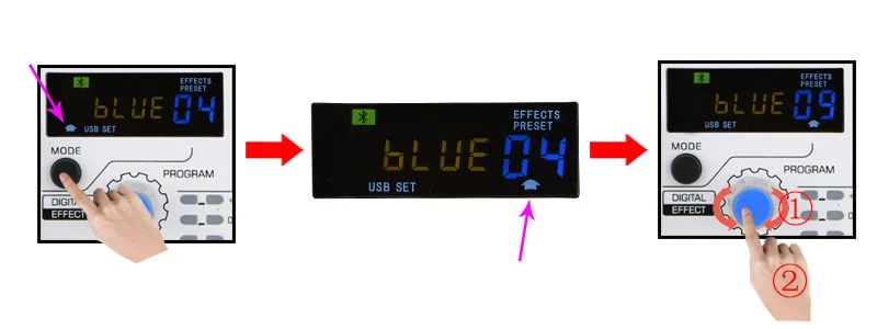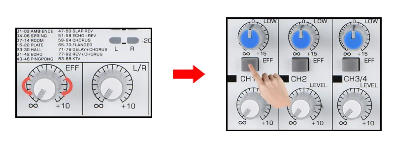 Gire la perilla "EFF" para ajustar el nivel de efecto.