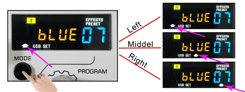 Presione el botón "MODE", la flecha blanca se moverá a la posición izquierda/media/derecha.