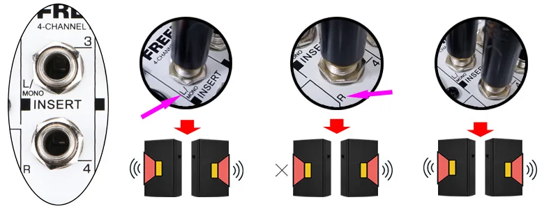 La señal solo entra en el conector [L/MONO]: La salida es estéreo.