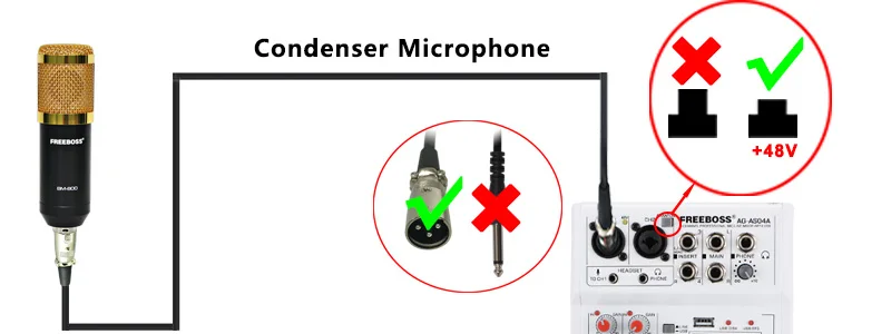 1. Asegúrate de que tu micrófono de condensador admite alimentación Phantom de + 48V.