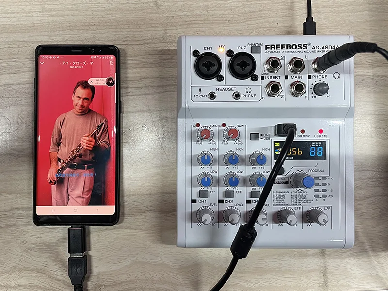 FREEBOSS 4 canales DC 5V Bluetooth ordenador móvil USB reproducir y grabar 88 efectos DSP Echo Reverb mezclador de Audio Personal