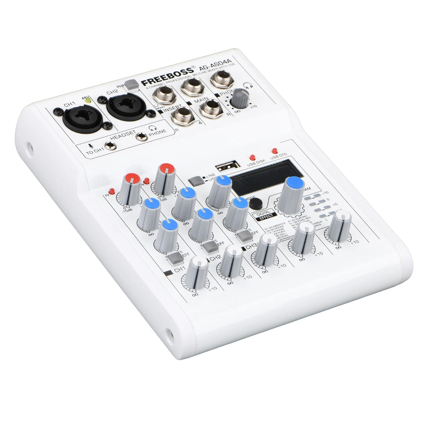 Comprar FREEBOSS-Consola de mezclas para transmisión móvil, mezclador de Audio y sonido, 4 canales, Bluetooth, PC, USB, Play, grabación, 88 DSP, efecto Digital, AG-AS04A
