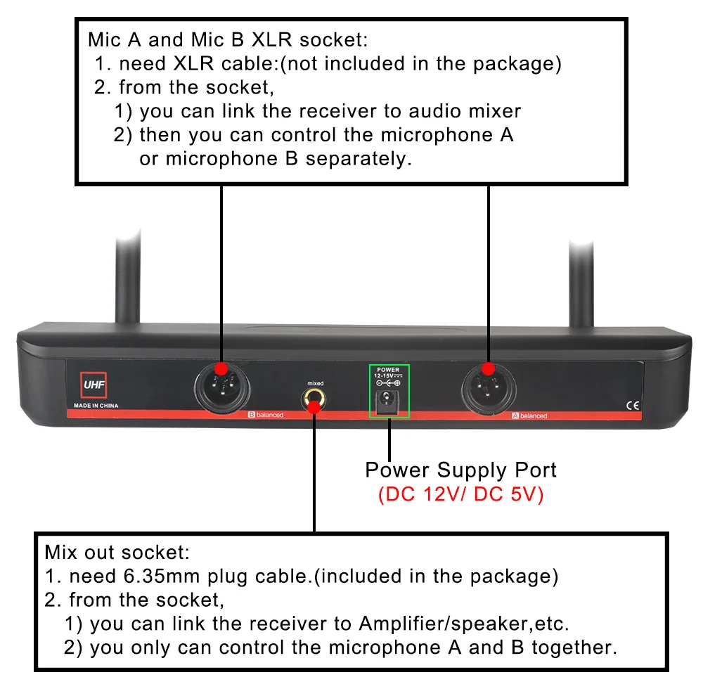 2. Receptor: DC 12V 500mA