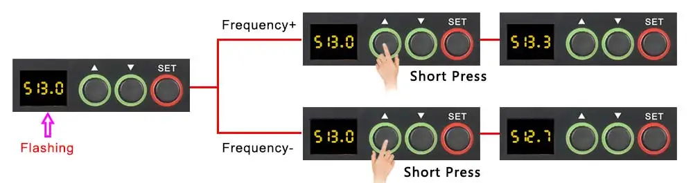 (2) Presione el botón "SET" para que coincida con la frecuencia