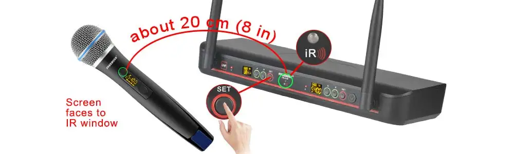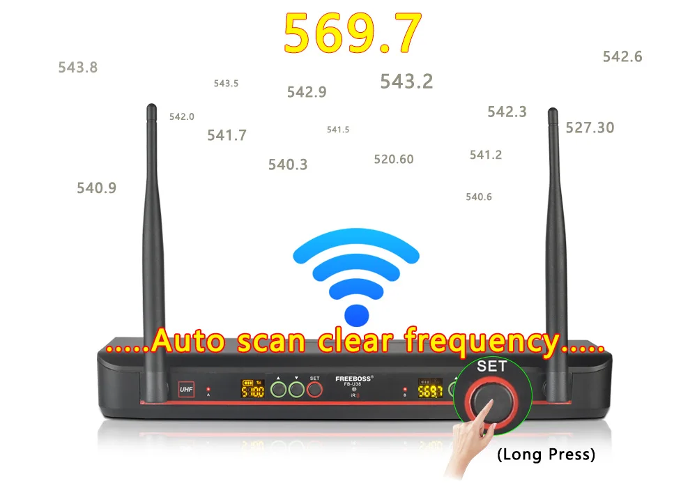 Auto Scan 2*100 UHF frecuencia ajustable inalámbrico transmisor micrófono con receptor
