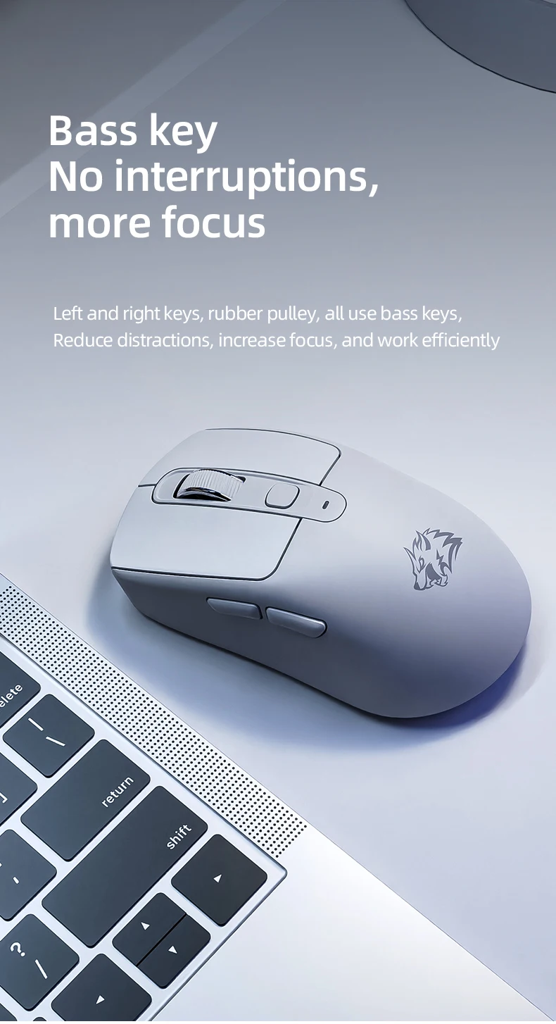 ----1.The bass key design is only for the keys, the mute effect does not include pressing the scroll wheel, pressing the scroll wheel will compress the internal components and lead to damage, please do not press the scroll wheel (the scroll wheel can only be rolled back and forth).