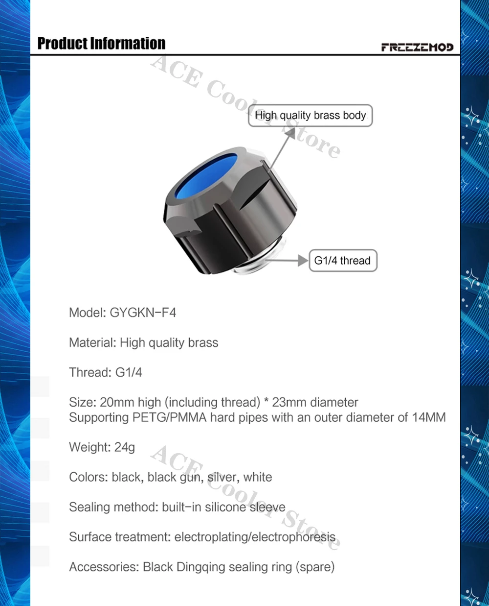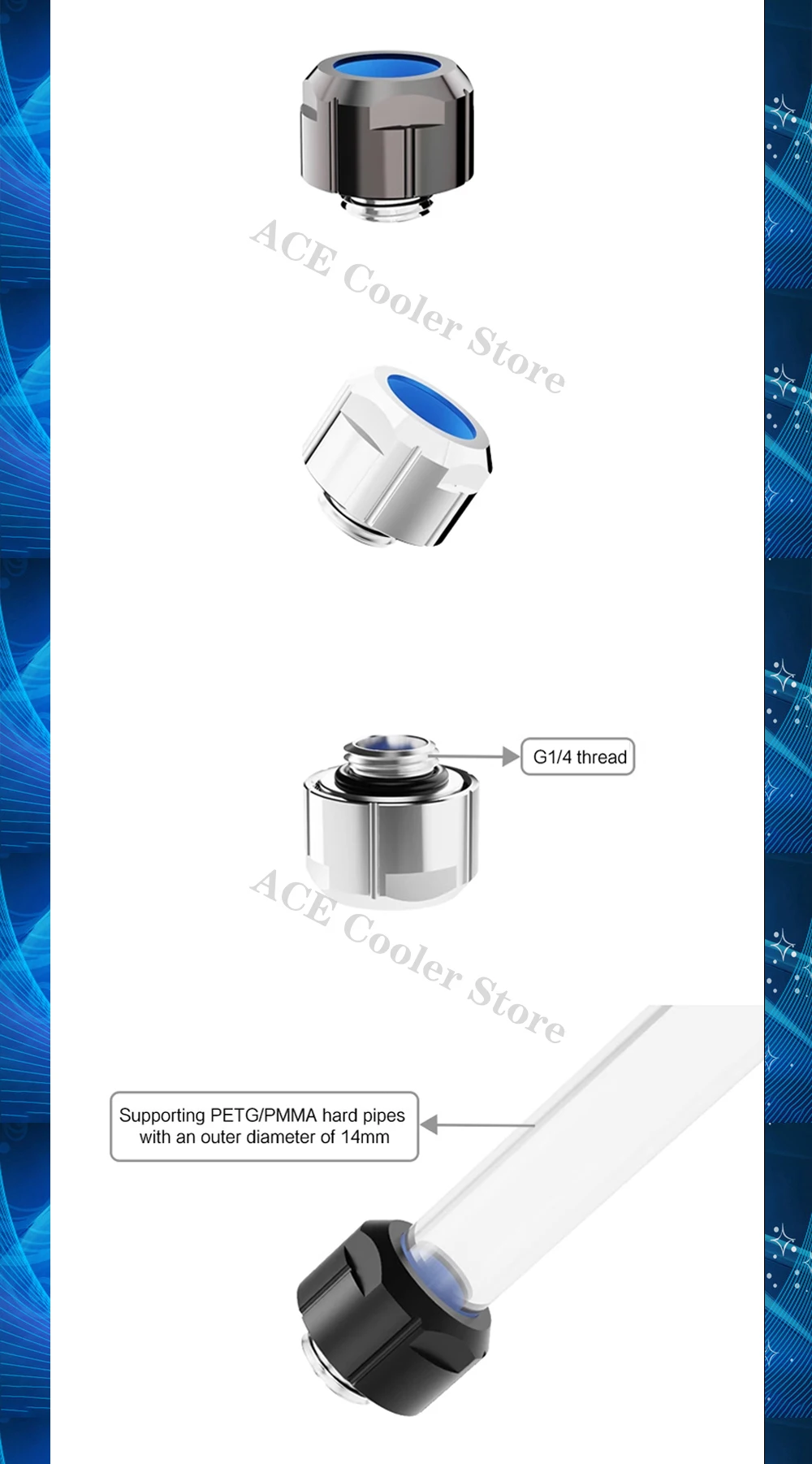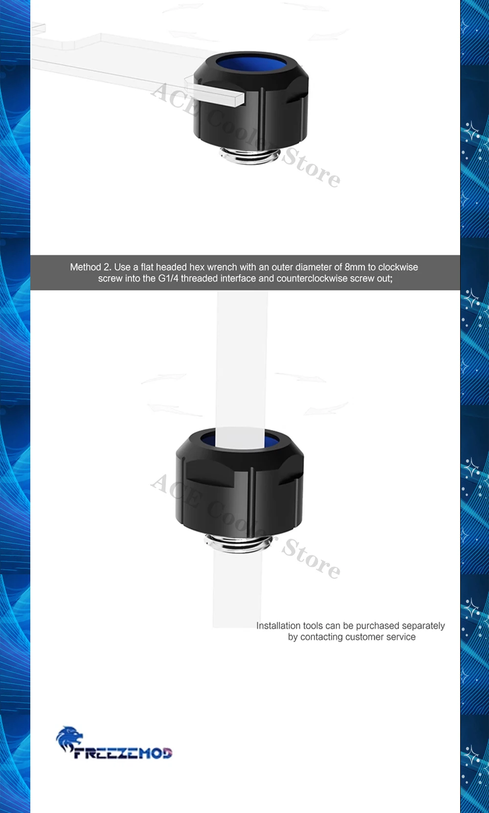 FREEZEMOD-accesorio de tubería dura antiapagado para refrigeración de PC, para tubos PETG PMMA OD14MM, ajuste manual rápido fijo con llave Allen