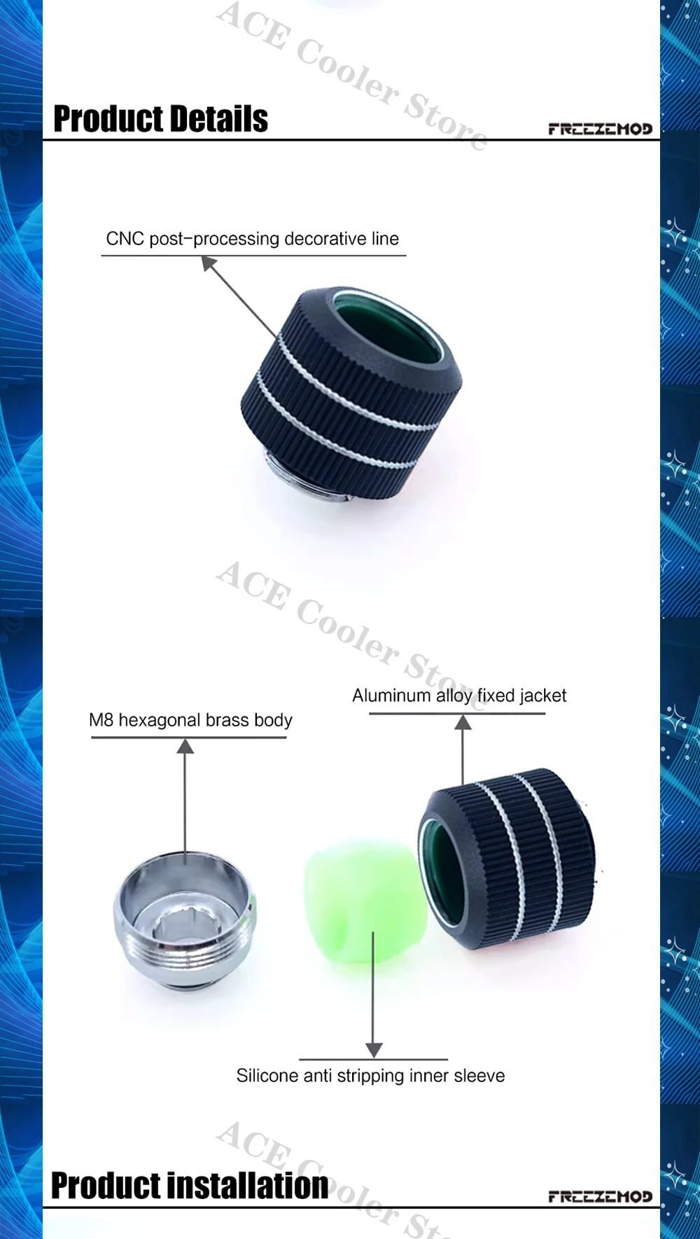 FREEZEMOD-accesorio de tubo duro antiapagado de refrigeración por agua para tubería de Metal acrílico PETG OD14mm, fuerza de tracción de 20KG para apretar a mano, HYGKN-B14