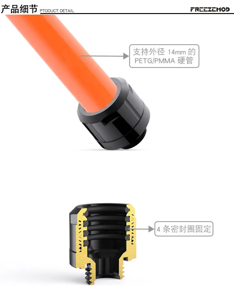 Comprar FREEZEMOD-accesorios de tubo duro de refrigeración por agua para PC, tubo acrílico/OD14MM PETG, conector negro y plateado, GYGKN-D4