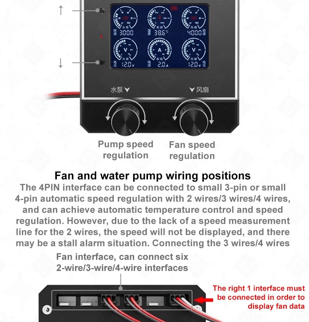 5 Velocidad del ventilador:Valor de velocidad en tiempo real del ventilador conectado a la interfaz del ventilador derecha, unidad: r/min (debido a las limitaciones de la pantalla, no se muestran otras velocidades de la interfaz del ventilador)