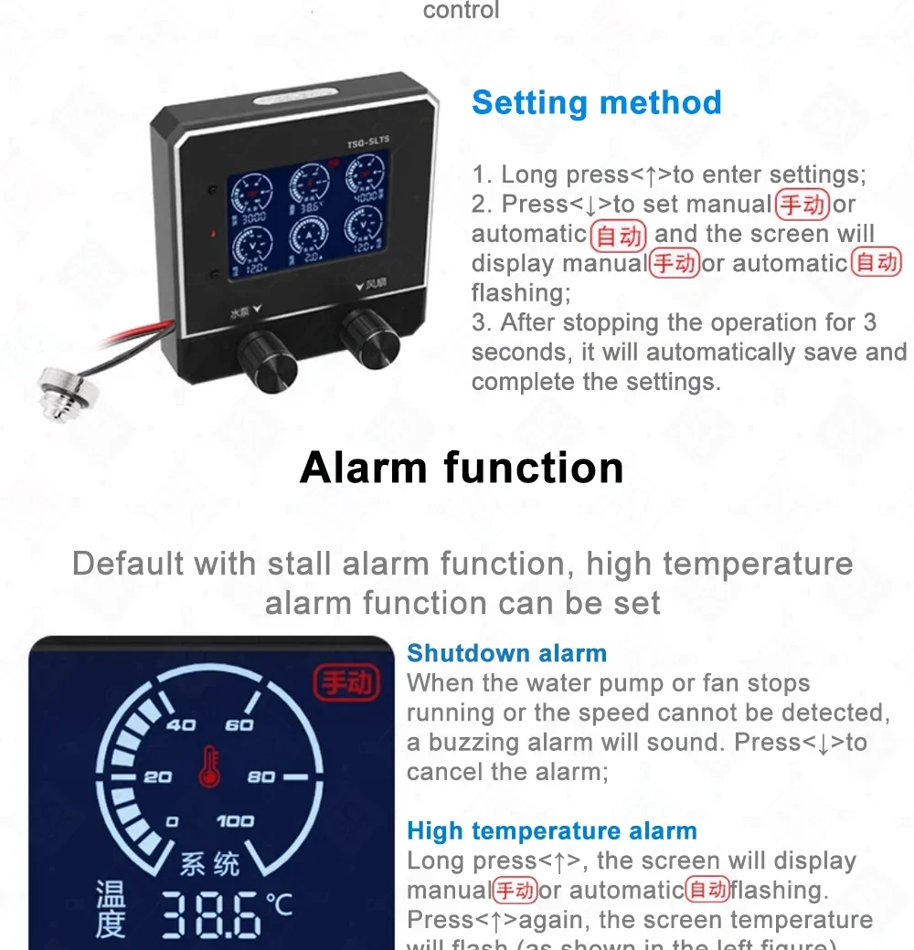 Apagado alarmaCuando la bomba de agua o el ventilador deja de funcionar o no se puede detectar la velocidad, sonará una alarma de zumbido.Presione ↓ para cancelar la alarma;