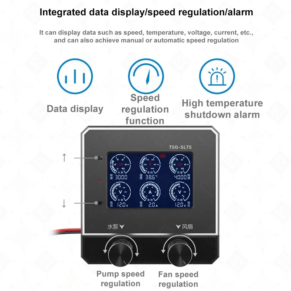 4 actual:El valor actual de la bomba de agua y el ventilador, que oscila entre 0 y 10 A.La corriente de la bomba de agua es ≤ 3A y la corriente total de los seis ventiladores es ≤ 6A