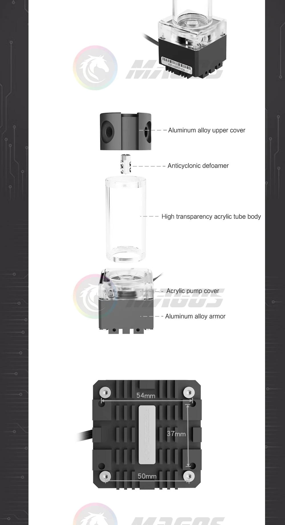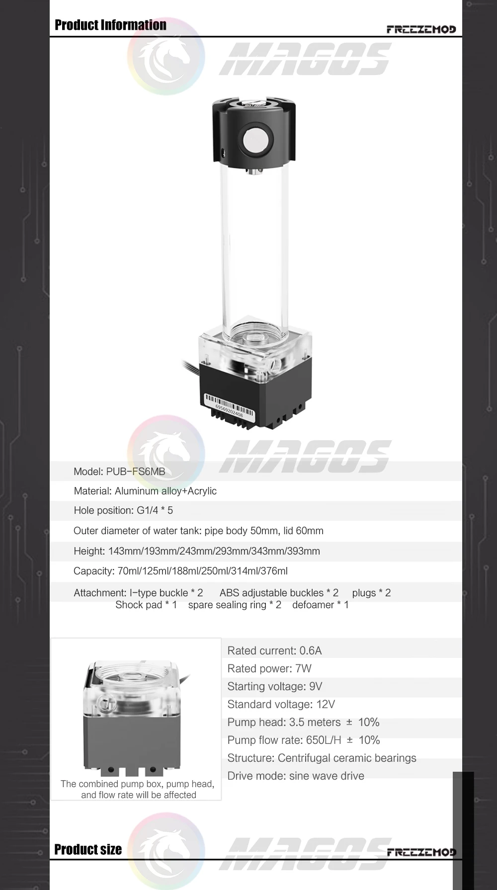 Comprar FREEZEMOD AIO Caja de depósito de bomba de agua 14-39 cm Res Lift 3,5 metros de flujo 650L/H antiespumante, negro/plata/blanco/rojo PUB-FS6MA