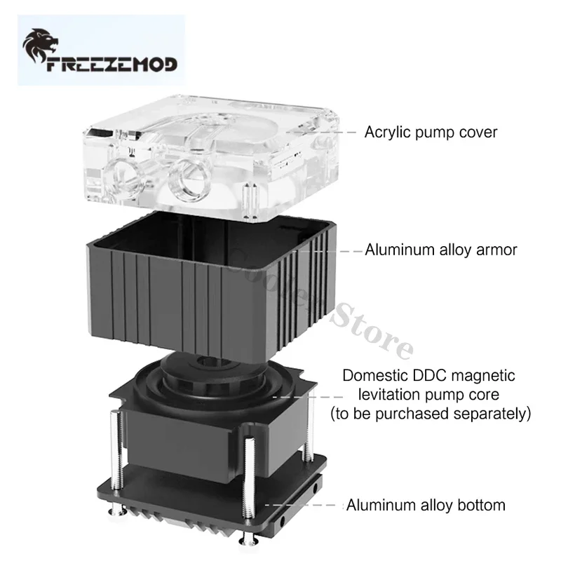 Comprar FREEZEMOD-armadura de cubierta de bomba de refrigeración por agua para ordenador, sin núcleo de bomba, para bomba DDC Q2 doméstica, PJ-GCDCC negro/Blanco/plateado