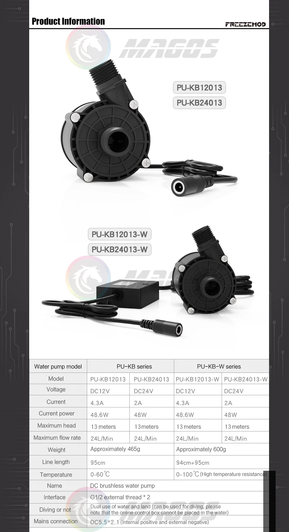 FREEZEMOD-bomba de agua de circulación, sistema de refrigeración PC, 2500L/H, DC 12V, 24V, 13m, cabeza sumergible, alta temperatura, PU-KB de rosca G1/2