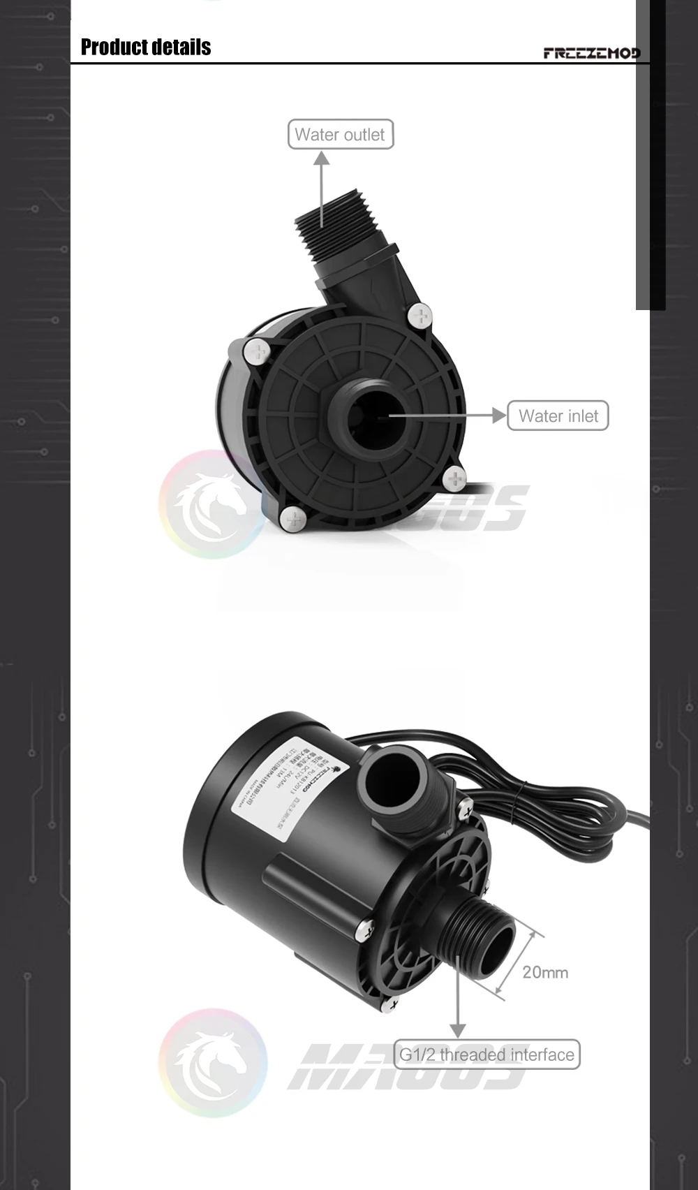 Comprar FREEZEMOD-bomba de agua de circulación, sistema de refrigeración PC, 2500L/H, DC 12V, 24V, 13m, cabeza sumergible, alta temperatura, PU-KB de rosca G1/2