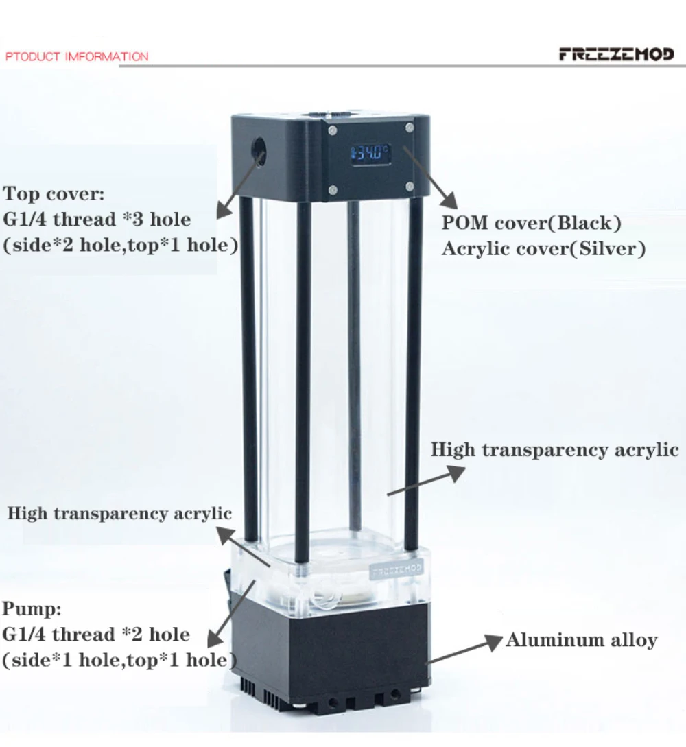 Comprar FREEZEMOD-bomba de agua refrigerada por agua PUB-FS6WX, pantalla LCD VA integrada, pantalla de temperatura ajustable, Dirección de entrada y salida