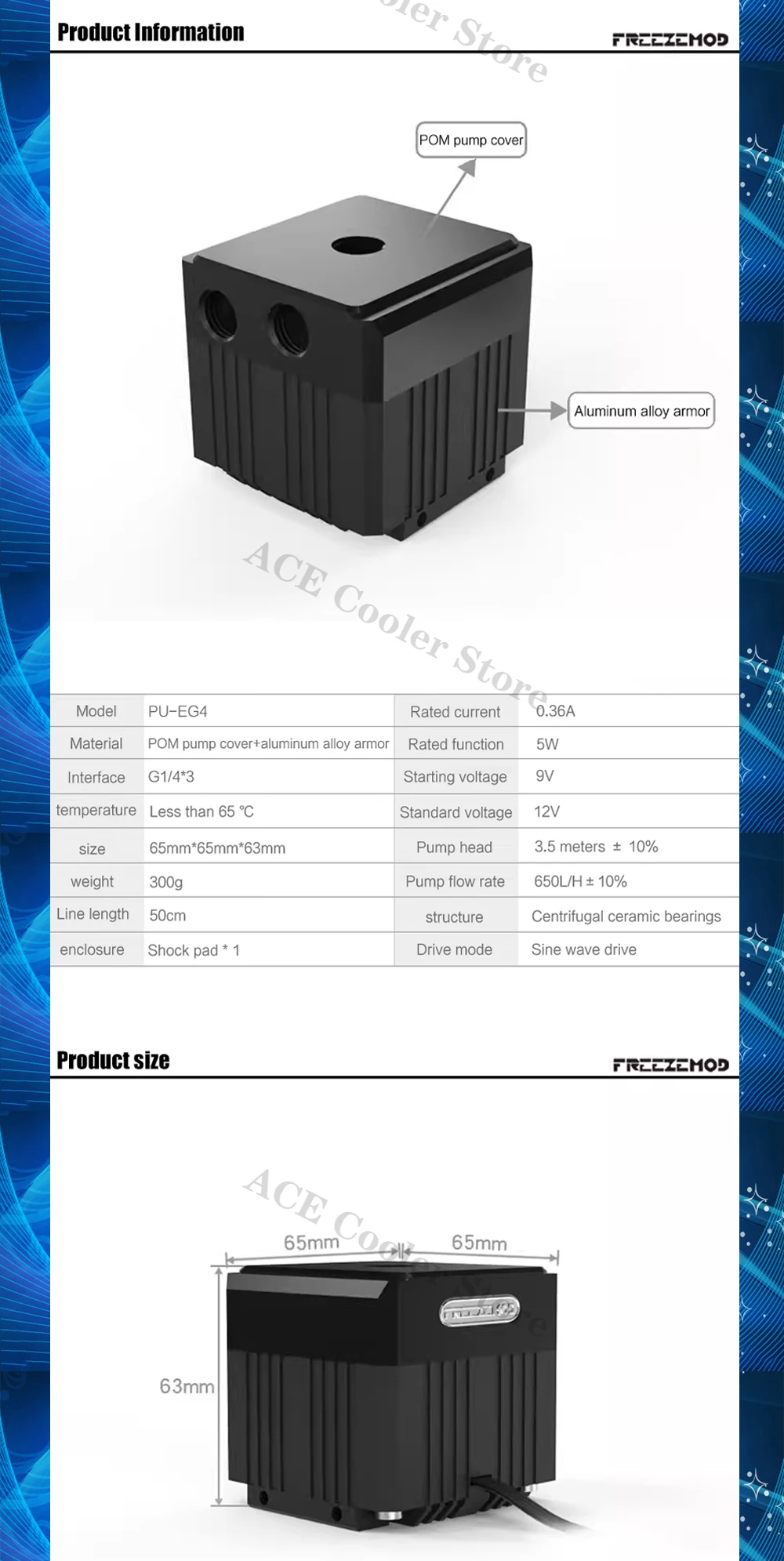 Material: cubierta de bomba POM + armadura de aleación de aluminio.